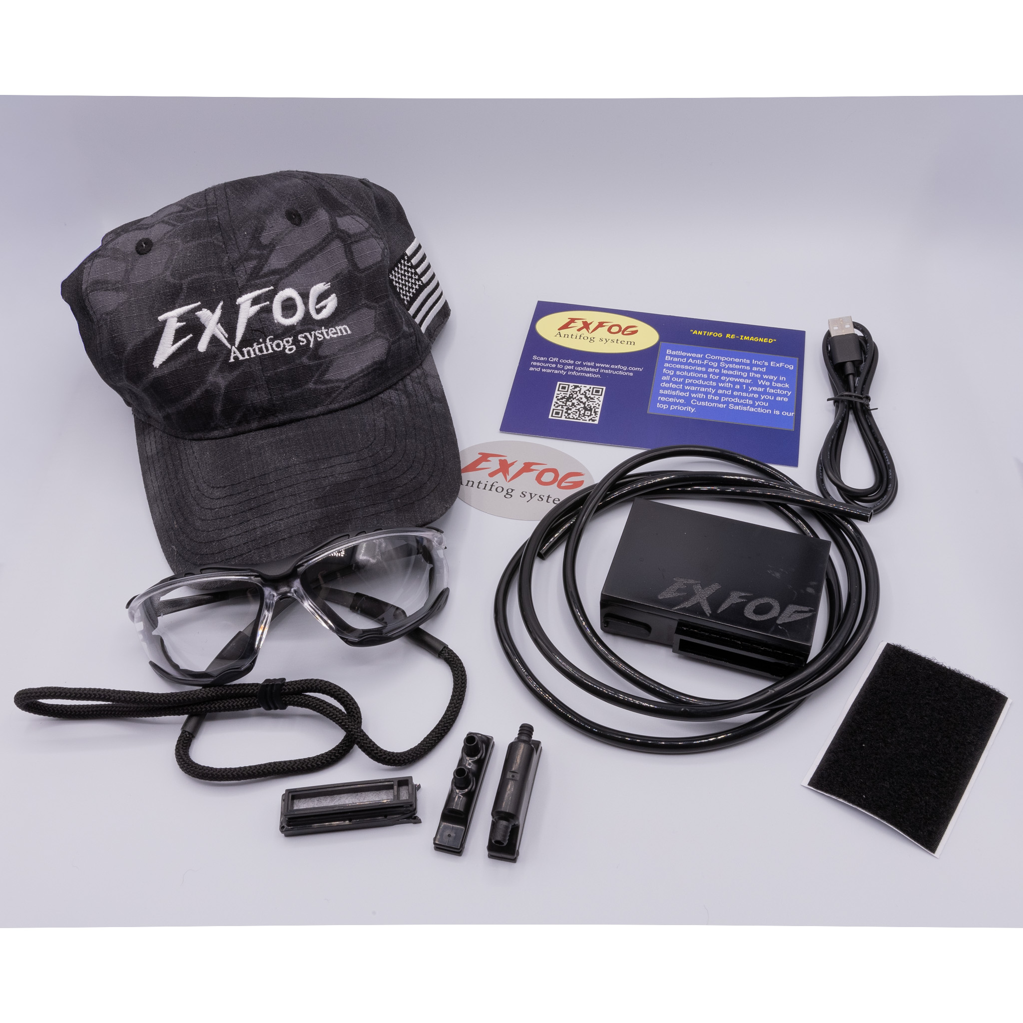 Optimize your efficiency while keeping your eyes safe from workplace hazards with the ExFog Antifog system for full seal goggles. Best for workers that want low profile full seal protection and prefer baseball style caps to headbands for mounting. ExFog is built tough to last in a variety of environments through every season. Its fan-driven system has variable speeds so that you don’t dry out your eyes or waste your battery. The system is designed to drive air through tubing into the temple portion of your full seal goggles, regulating the temperature and eliminating fog.